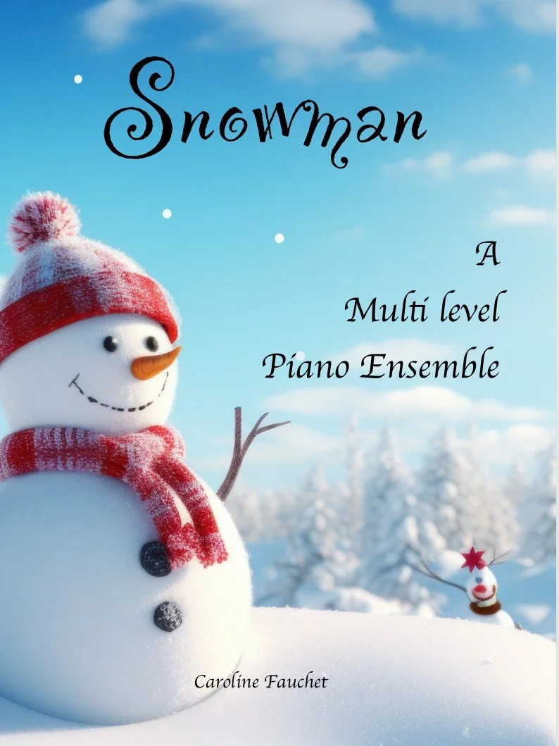 Meet “Snowman” — a five-piano, multi-level ensemble by Caroline Fauchet, perfect for holiday recitals. Joyful, rhythmic, and inclusive for every student background with a little wink of Jingle Bells at the end